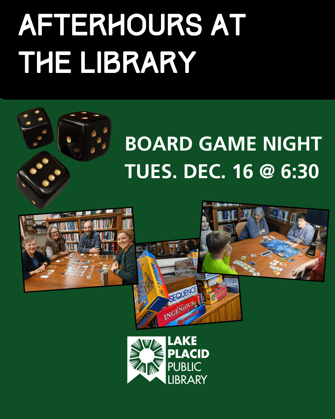 After Hours Board Game Night + Add to Google Calendar + iCal / Outlook export Date Dec 16 2025 Expired! Time 6:30 pm - 8:30 pm Share this event